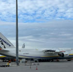 das ist die Antonov AN-225 „Mirja“, es war das größte Frachtflugzeug der Welt, konnte 250 t Fracht aufnehmen,