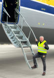 werden kann um eine Ebene zwischen zu verladender Fracht und dem Frachtraum herzustellen. Bevor wir nun das Flugzeug über eine kleine Leiter betreten