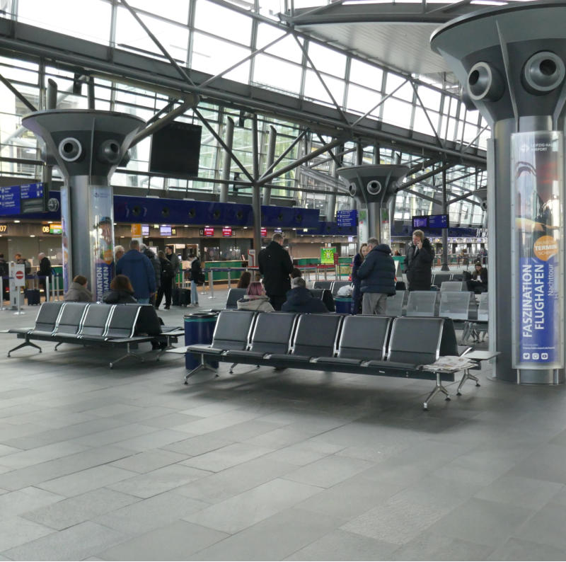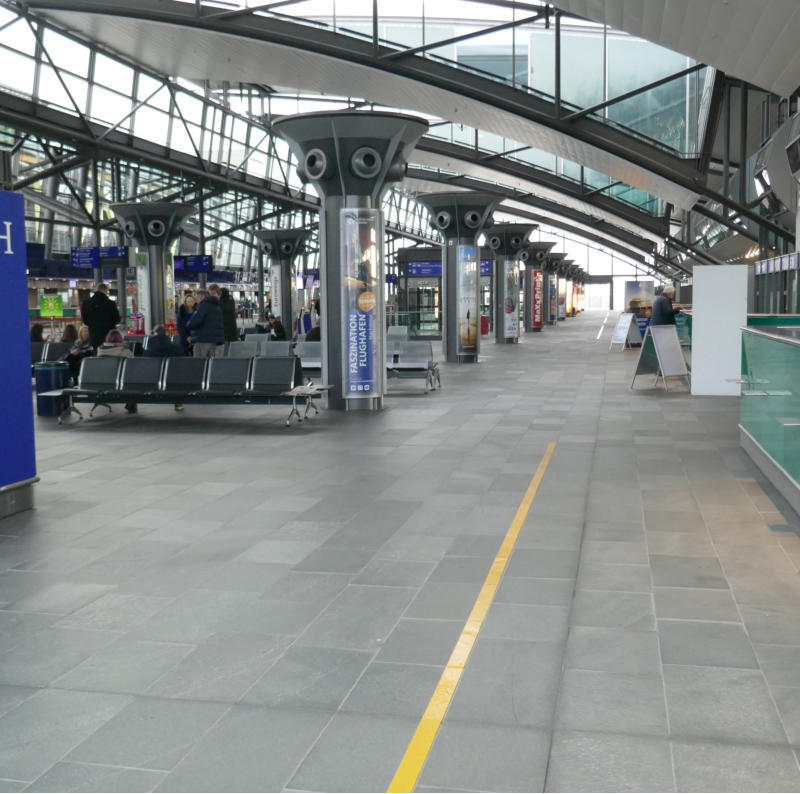 des Check-in im Zentralterminal des Flughafens. Herr Matheis informiert über den Verlauf unserer Besichtigungstour und verweist auf das Kameraverbot