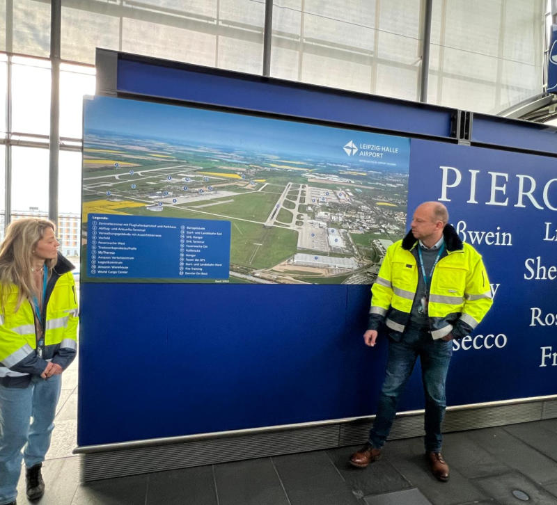 Nach der obligatorischen Ausweiskontrolle bekommen wir von 2 Sicherheitsmitarbeitern einen Überblick über den Flughafen Leipzig-Halle, über die