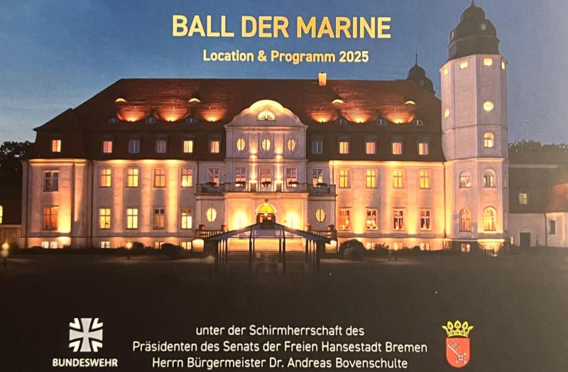 Ball der Marine 2025 fand, wie schon in den vergangenen Jahren, im wunderschönen Schlosshotel Fleesensee am 21. November unter der Schirmherrschaft des Präsidenten des Senats der Freien Hansestadt Bremen statt.Mittlerweile ist der Ball der Marine im Jahresverlauf der Carl Rudolph Bromme Gesellschaft e.V. zu einer festen Größe geworden.Hier treffen unverhofft Mitglieder unserer Gesellschaft aufeinander, die sich bisher nie persönlich begegnet sind und so Beziehungenerneuern und auffrischen. In Gesprächen mit anderen Gästen haben wir auch eine gewisse Neugier auf unsere Gesellschaft gewecktund können durchaus auch neue Mitglieder begrüßen.